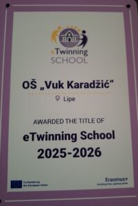 Поносни смо што можемо да објавимо да је наша школа по трећи пут за редом добила ознаку eTwinning школе за школску 2025–2026. годину! Посебна захвалност иде свим посвећеним наставницима, координаторима пројеката, руководству школе, породицама и, пре свега, ученицима који су срце свих наших пројеката.
